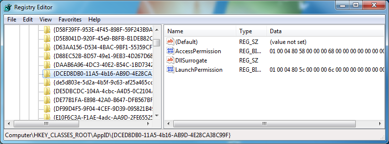 | Speicherpfad | HKCR\AppID\* |