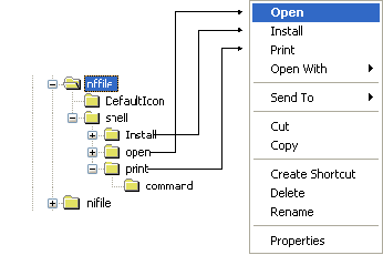 Unter Windows reichen die Dateiverknüpfungen (File-Extensions) bis zu DOS-Zeiten zurück. Windows erkennt Dateitypen anhand der Endung des Dateinamens. Diese Extensions werden in Legacy-Paketen über Classes_Root definiert, und zwar im Root des Trees, sie beginnen immer mit einem Punkt (.).